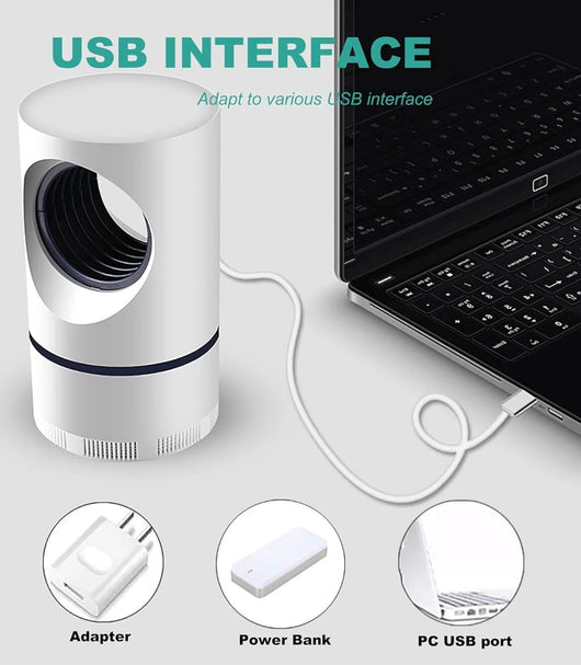 Keep your home mosquito-free with this modern, USB-powered mosquito trap lamp. Designed with a powerful vortex fan and UV light, it attracts and traps mosquitoes silently—perfect for bedrooms, especially for babies and light sleepers. Easy to power via adapter, power bank, or PC USB port. Safe, chemical-free, and energy-efficient.